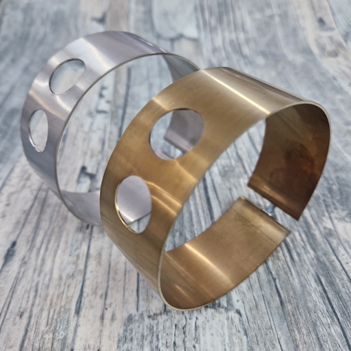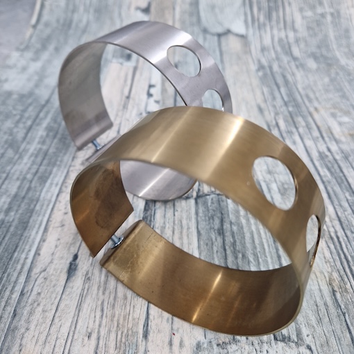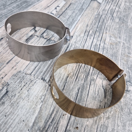 Made in Stainless steel easy access to the mounting screw under the Dynamo stand . I offer these in 2 different colours , the raw stainless steel which is the Silver colour , I can also heat the steel up and get the Gold effect  . See my links below for each style .